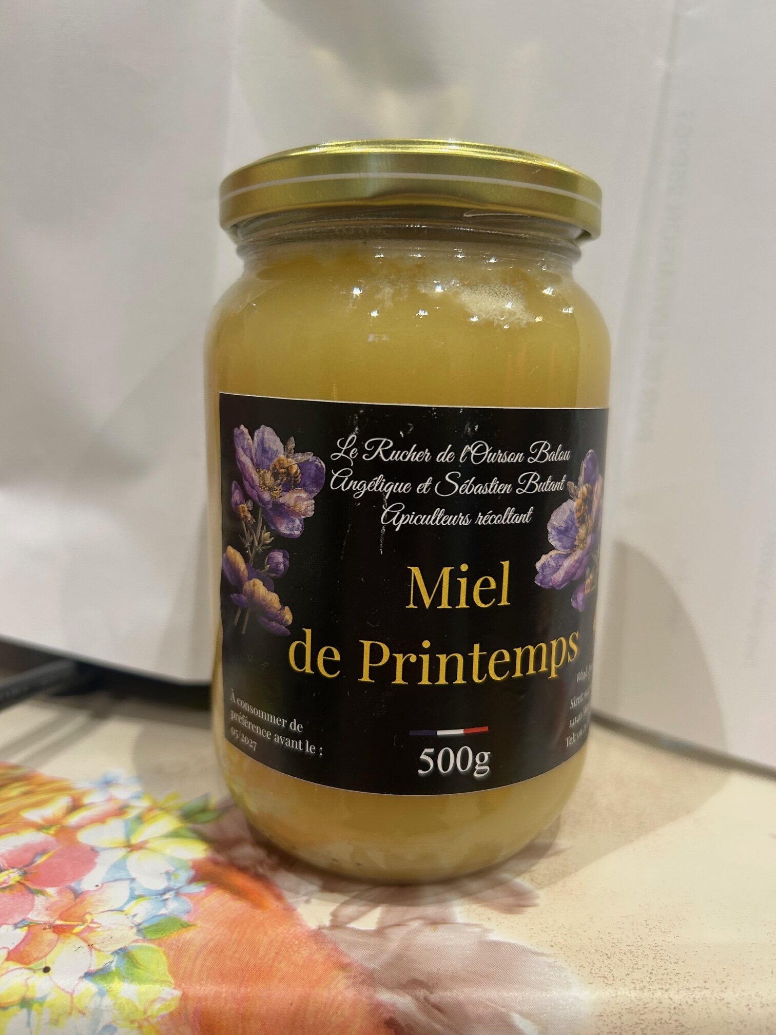 Miel de printemps toutes fleurs. Récolté sur les fleurs présentes de mars à mai. Texture pâte à tartiner.